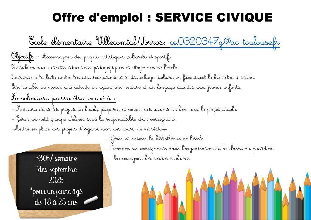 NOUVELLE OFFRE D'EMPLOI ! SERVICE CIVIQUE :