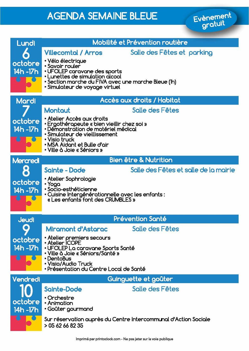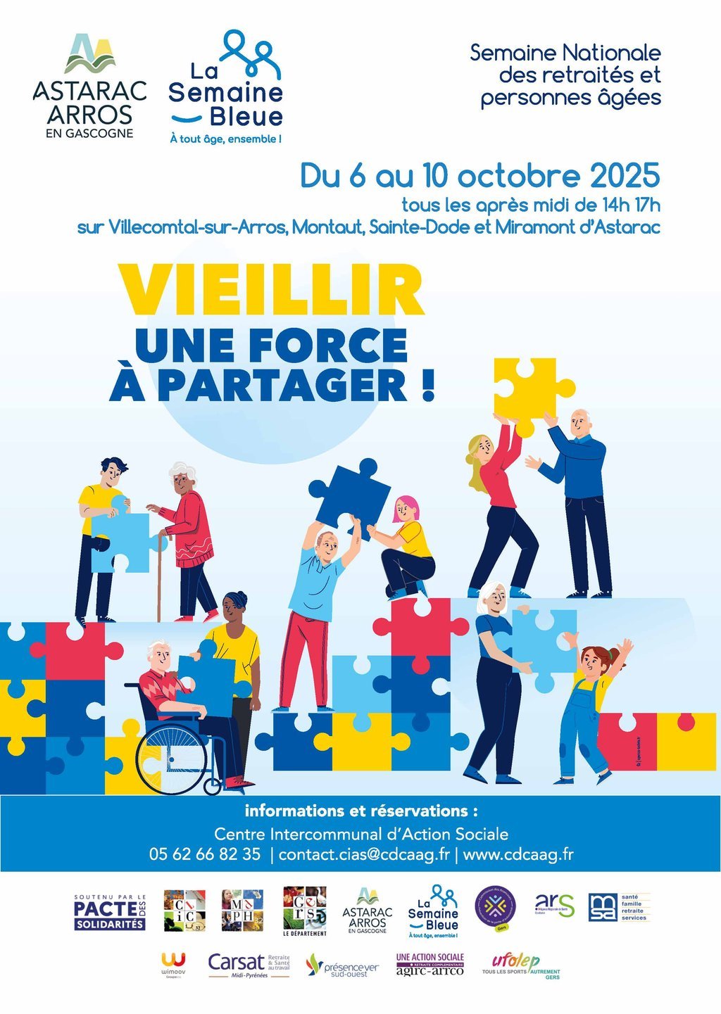 - 06 octobre 2025 : Mobilité à Villecomtal sur Arros : plusieurs ateliers sur les dangers de la route, la mobilité douce, la prévention des chutes, jeux (initiation aux nouvelles technologies, moment convivial.