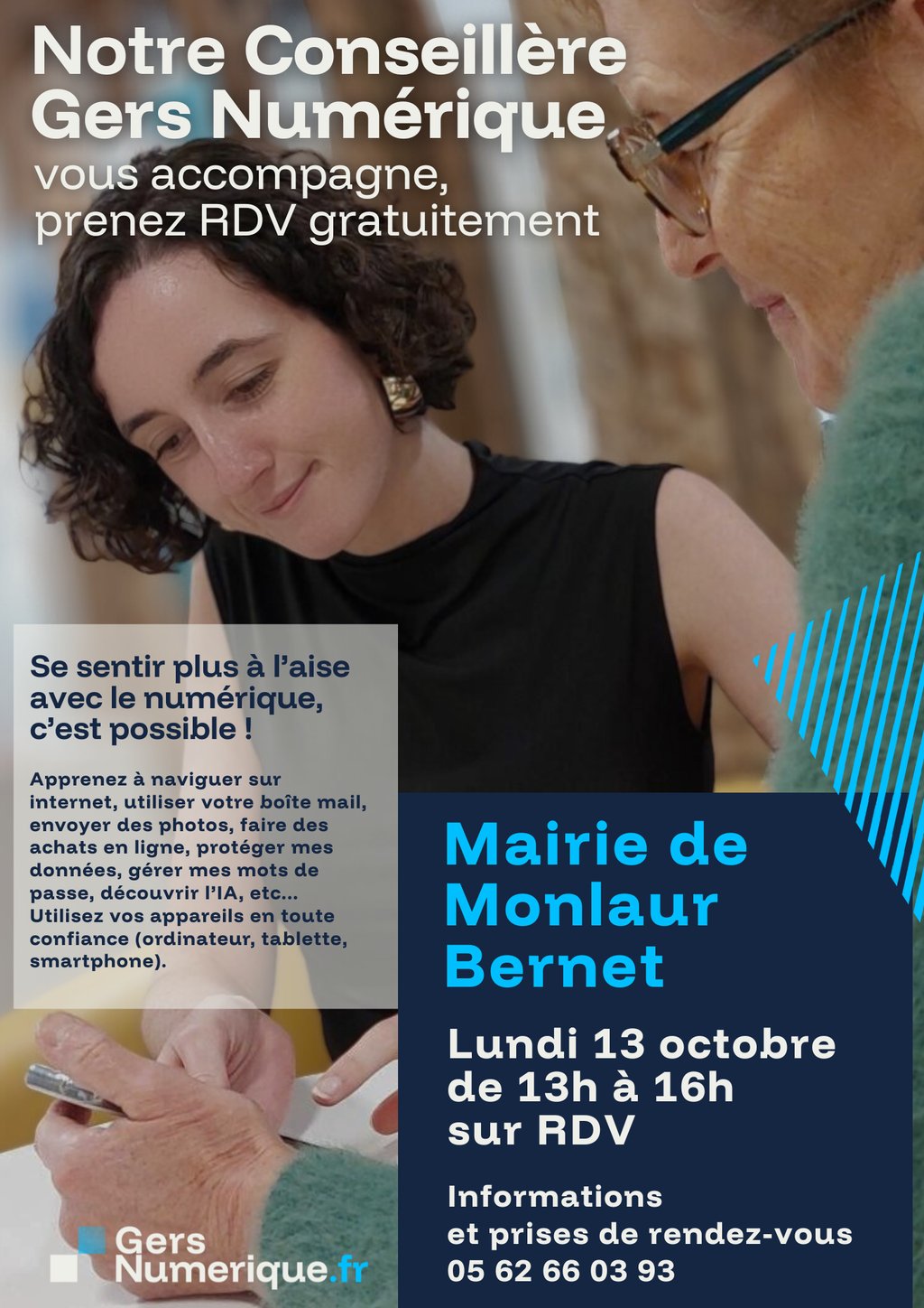 💻 Permanence Conseillère Gers Numérique à la Mairie de Monlaur-Bernet